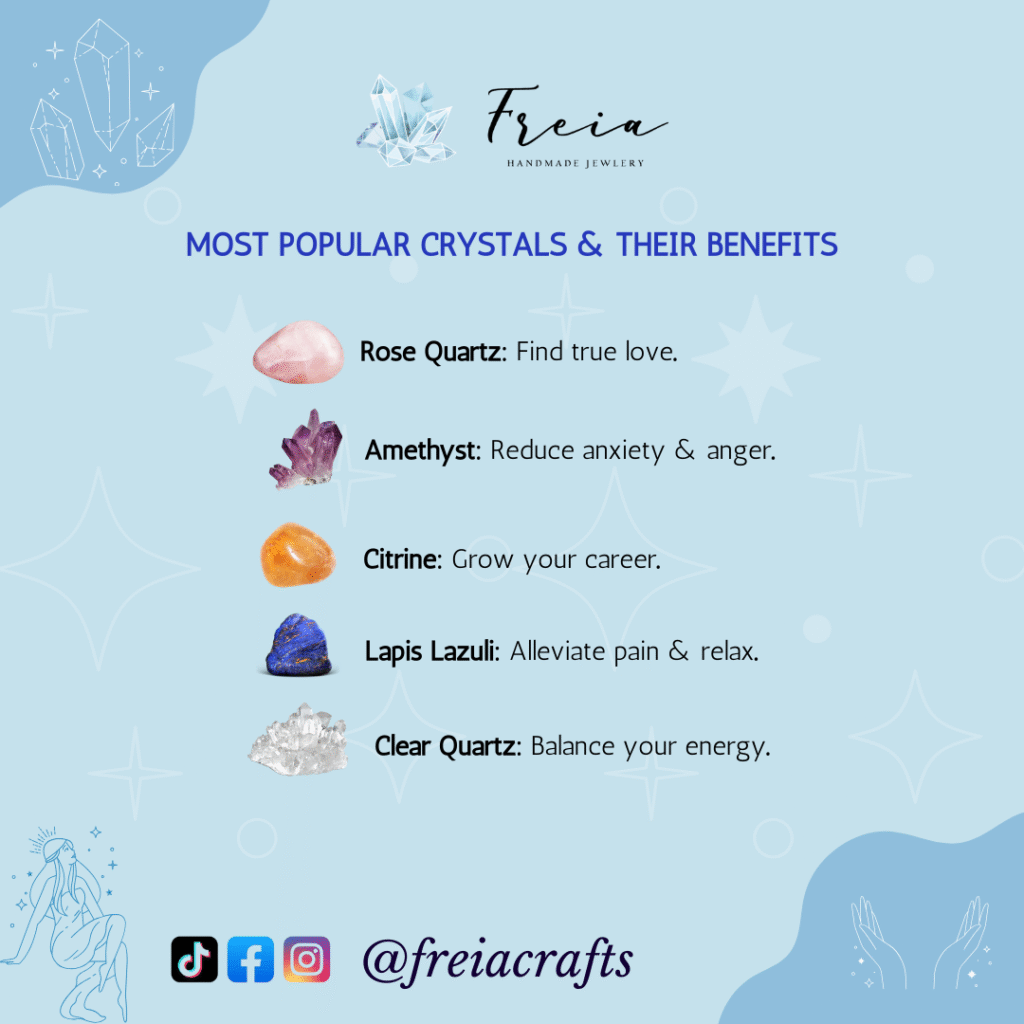- Weight matters — each crystal has a certain heaviness, usually heavier than most other jewelry materials.
