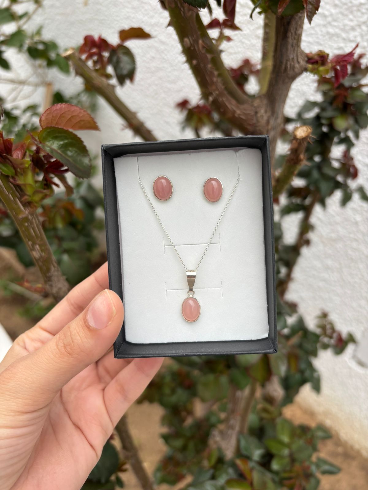 Rose quartz Silver Set