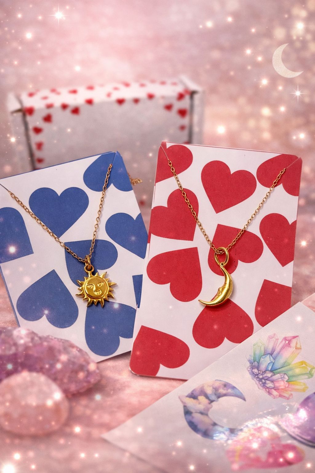 A meaningful sun and moon necklace set, perfect for couples, best friends, or soulmates.